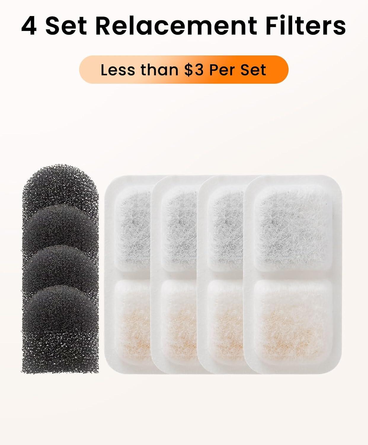 4pcs Replacement Filters for 3.2L Wireless Cat Water Fountain, 2 Months Set of Replacement Filters and Sponges